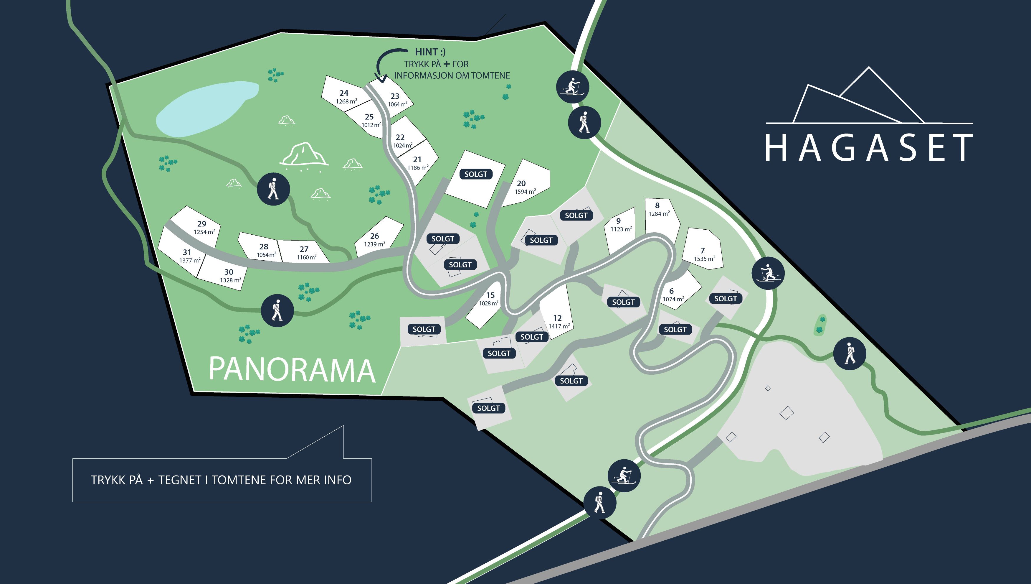 Hagaset Panorama er kjent for sitt tidlige snøfall og snøsikre forhold gjennom hele vintersesongen. Plassert over 1000 meter over havet, gir tomten deg gleden av solfylte dager på åsen året rundt.